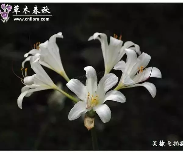 陕西石蒜草本,地生。鳞茎近球形;叶带状;伞形花序,有花5-8朵,白色,花被裂片腹面散生少数淡红色条纹,…