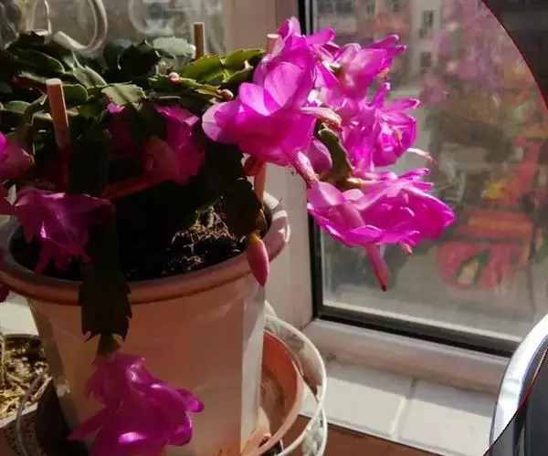 栽植蟹爪兰应根据其植株的大小合理配制支撑架,尤其是五六年生以后的植株,枝冠增大,压力加大,应及时更换支撑架,以防支撑架腐烂造成植株倒伏。若枝冠过厚,不利通风透光,更不利于育蕾、开花,也影响美观,可随冠作形,将枝冠疏理成双层,用双层支架支撑,形成高低见层,花枝分散均匀的形态,不但改善通风透光条件,而且造型优美别致,开花也多。