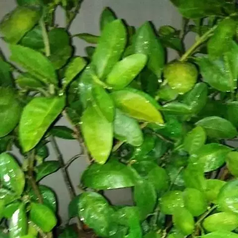 树高3米以内;枝有刺。叶质厚,浓绿,卵状披针形或长椭圆形,长5-11厘米,宽2-4厘米,顶端略尖或钝,基部宽楔形或近于圆;叶柄长达1.2厘米,翼叶甚窄。