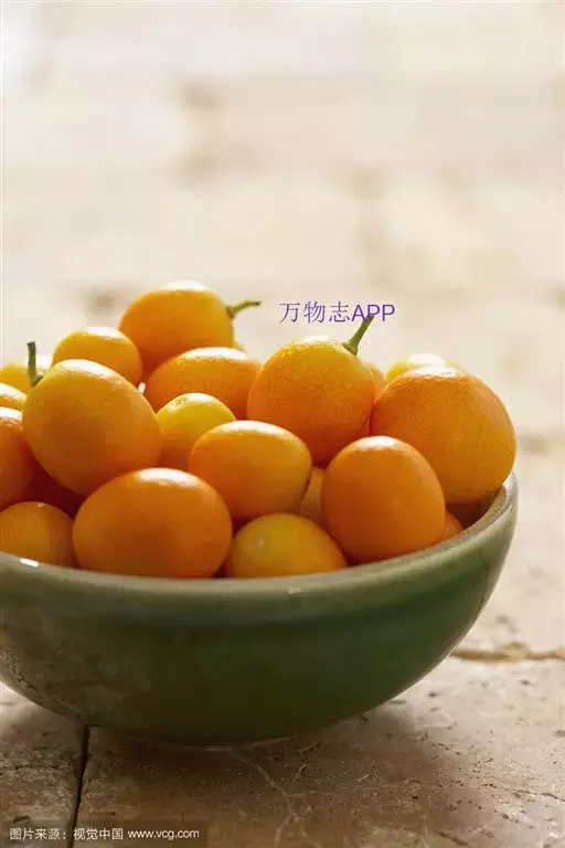 金橘 韩彦直。《桔谱》:“金柑(橘)出江西,北人不识。景佑中始主汴都,因温成皇后嗜之,价遂贵重。”