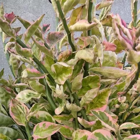 变叶珊瑚花,是大戟科麻风树属常绿灌木。变叶珊瑚花单叶互生,倒阔披针形,叶面为浓绿色,叶背为紫绿色,…