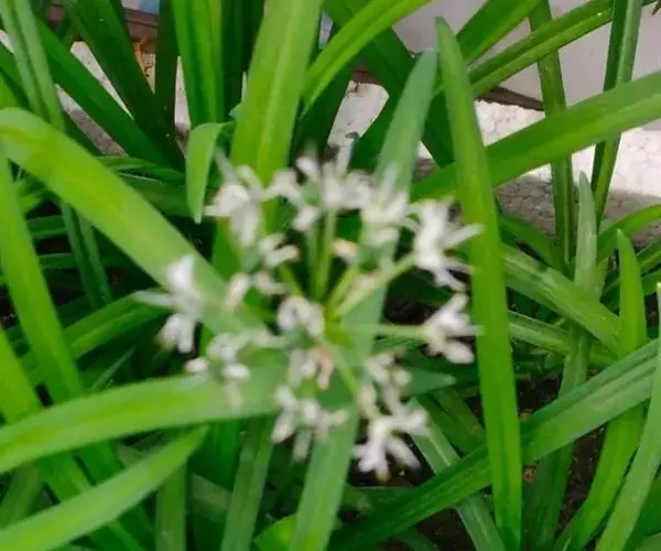 鳞茎圆柱状,具粗壮的根;鳞茎外皮白色,膜质,不破裂。叶条形至宽条形,稀为倒披针状条形,比花葶短或近等长,宽5-10(-28)毫米,具明显的中脉。花葶侧生,圆柱状,或略呈三棱柱状,高(10-) 20-60厘米,下部被叶鞘;总苞2裂,常早落;伞形花序近球状,多花,花较密集;小花梗纤细,近等长,为花被片的2-3(-4)倍长,基部无小苞片;花白色,星芒状开展;花被片等长,披针形至条形,长4-7.5毫米,宽1-1.2毫米;先端渐尖或不等的2裂;花丝等长,比花被片短或近等长,在最基部合生并与花被片贴生;子房倒卵形,基部收狭成短柄,外壁平滑,每室1胚珠;花柱比子房长;柱头点状。花果期8-19月。
