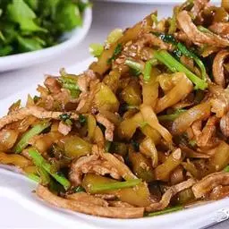 榨菜肉丝是四川省传统的名菜,属于川菜。此菜在四川家庭和中低档饭馆常年制作,原料易得,操作简便,咸淡…