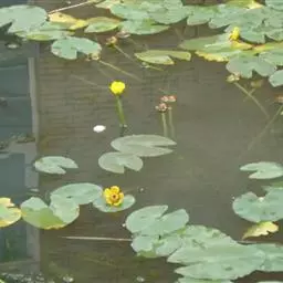 荇菜叶片形睡莲小巧别致,鲜黄色花朵挺出水面,花多花期长,是庭院点缀水景的佳品,用于绿化美化水面。.