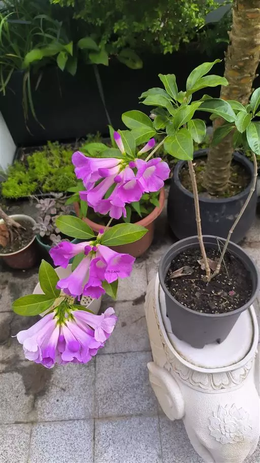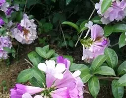 蒜香藤花期为春至秋季,一般在夏末初秋的9-10月开花最旺。春秋开花,花朵初开时,颜色较深,以后颜色渐淡,每朵花约可维持5-7天。花紫红色至白色,,叶揉搓有蒜香味。