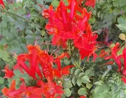 炮仗藤 Miers)紫葳科炮仗藤属藤本植物。小枝顶端有丝状卷须;叶对生,卵形;花萼钟状,橙红色,…
