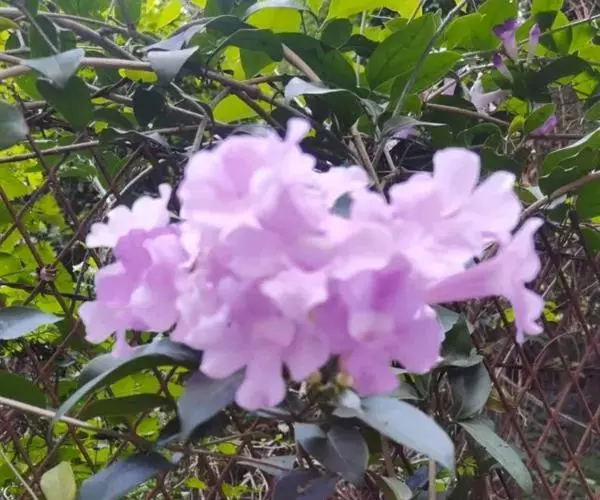 蒜香藤(拉丁学名:Mansoa alliacea (Lam.)A.H.Gentry),又名紫铃藤、张氏紫葳,为紫葳科常绿藤状灌木。植株蔓性,具卷须,叶为二出复叶,深绿色椭圆形,具光泽。花腋生,聚伞花序,花冠筒状,开口五裂。花期春季至秋季,盛花期8-12月。其花、叶在搓揉之后,有大蒜的气味,因此得名蒜香藤。 [1-2]