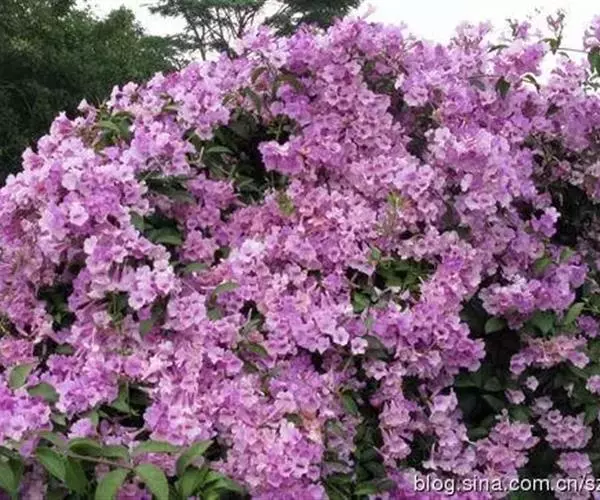 蒜香藤性喜高温,原产于南美洲的圭亚那和巴西。蒜香藤生性强健,病虫害少,一般作为篱笆、围墙美化或凉亭、棚架装饰之用。