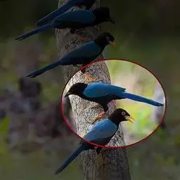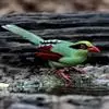 蓝绿鹊:中型鸟类,共有5个亚种。体长36-38厘米。尾长,嘴、脚红色。通体羽色主要为草绿色,…