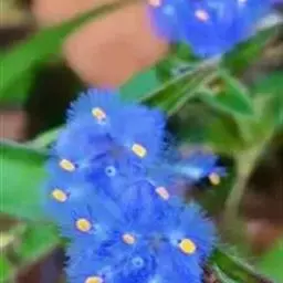 蓝耳草(学名:Cyanotis vaga (Lour.) Schultes. et J. H. Schultes)是多年生披散草本植物,基部有球状而被毛的鳞茎,茎通常自基部多分枝,叶片线形至披针形,蝎尾状聚伞花序顶生,并兼腋生,单生,总苞片较叶宽而短,佛焰苞状,苞片镰刀状弯曲而渐尖,两列,每列覆瓦状排列;萼片基部连合,长圆状披针形,顶端急尖,花瓣蓝色或蓝紫色,顶端裂片匙状长圆形;花丝被蓝色绵毛。蒴果倒卵状三棱形,种子灰褐色,具许多小窝孔。7-9月开花,10月结果。