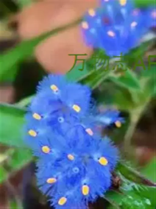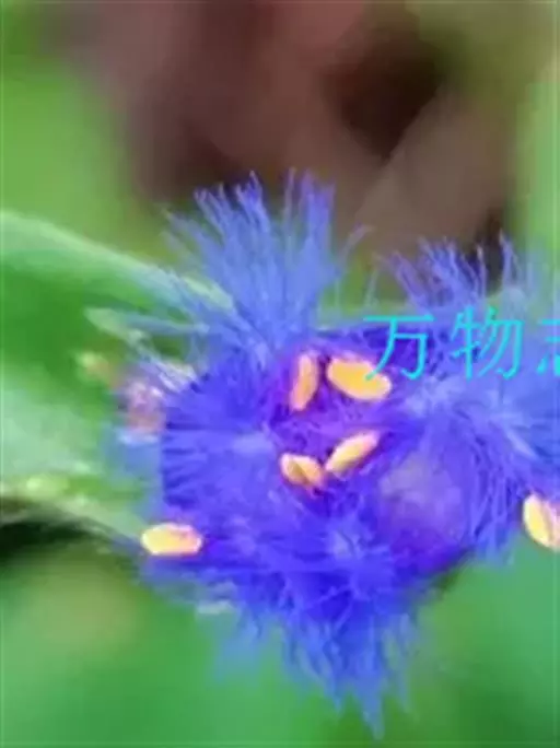 多年生披散草本,全体密被长硬毛,有的为蛛丝状毛,有的近无毛,基部有球状而被毛的鳞茎,鳞茎直径约1厘米。茎通常自基部多分枝,或上部分枝,或少分枝,长10-60厘米。叶线形至披针形,长5-10(15)厘米,宽0.3-1 (1.5)厘米。蝎尾状聚伞花序顶生,并兼腋生,单生,少有在顶端数个聚生成头状,具花序梗或无;总苞片较叶宽而短,佛焰苞状,苞片镰刀状弯曲而渐尖,长5-10毫米,宽约3毫米,两列,每列覆瓦状排列;萼片基部连合,长圆状披针形,顶端急尖,长近5毫米,外被白色长硬毛;花瓣蓝色或蓝紫色,长6-8毫米,顶端裂片匙状长圆形;花丝被蓝色绵毛。蒴果倒卵状三棱形,顶端被细长硬毛,长约2.5毫米,直径约3毫米。种子灰褐色,具许多小窝孔。花期7-9月,果期10月。