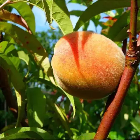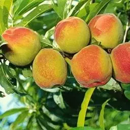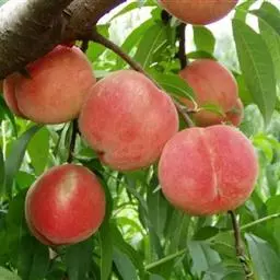 乔木,高3-8米;树冠宽广而平展;树皮暗红褐色,老时粗糙呈鳞片状;小枝细长,无毛,有光泽,绿色,向阳处转变成红色,具大量小皮孔;冬芽圆锥形,顶端钝,外被短柔毛,常2-3个簇生,中间为叶芽,两侧为花芽。叶片长圆披针形、椭圆披针形或倒卵状披针形,长7-15厘米,宽2-3.5厘米,先端渐尖,基部宽楔形,上面无毛,下面在脉腋间具少数短柔毛或无毛,叶边具细锯齿或粗锯齿,齿端具腺体或无腺体;叶柄粗壮,长1-2厘米,常具1至数枚腺体,有时无腺体。花单生,先于叶开放,直径2.5-3.5厘米;花梗极短或几无梗;萼筒钟形,被短柔毛,稀几无毛,绿色而具红色斑点;萼片卵形至长圆形,顶端圆钝,外被短柔毛;花瓣长圆状椭圆形至宽倒卵形,粉红色,罕为白色;雄蕊约20-30,花药绯红色;花柱几与雄蕊等长或稍短;子房被短柔毛。果实形状和大小均有变异,卵形、宽椭圆形或扁圆形,直径(3)5-7(12)厘米,长几与宽相等,色泽变化由淡绿白色至橙黄色,常在向阳面具红晕,外面密被短柔毛,稀无毛,腹缝明显,果梗短而深入果洼;果肉白色、浅绿白色、黄色、橙黄色或红色,多汁有香味,甜或酸甜;核大,离核或粘核,椭圆形或近圆形,两侧扁平,顶端渐尖,表面具纵、横沟纹和孔穴;种仁味苦,稀味甜。花期3-4月,果实成熟期因品种而异,通常为8-9月。2n=16。