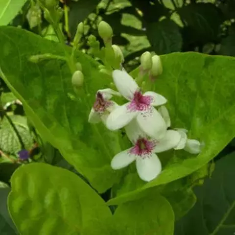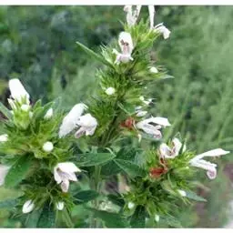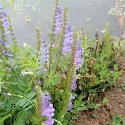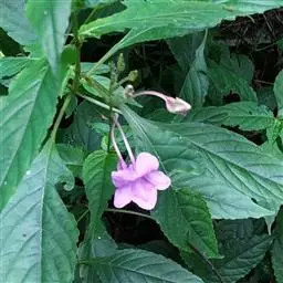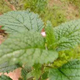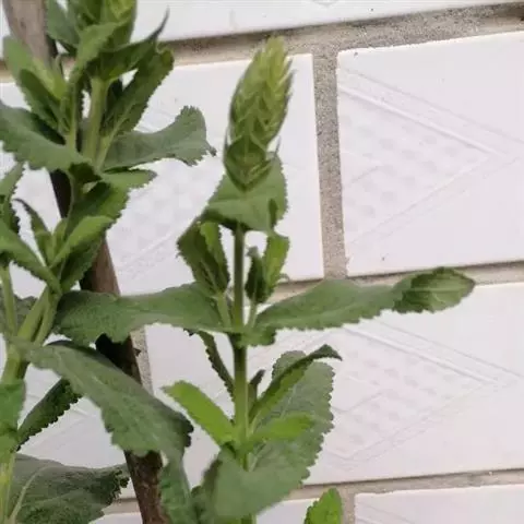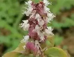 茴藿香的叶片为狭长心形,对生,叶缘呈粗锯 齿状,有明显的叶脉,叶质柔软,将叶片轻揉可闻到八角香料的味道。茎直立性,分枝多,植株高度在35-80公分左右,夏季开花,花顶生,长穗状,花色呈紫色或白色。