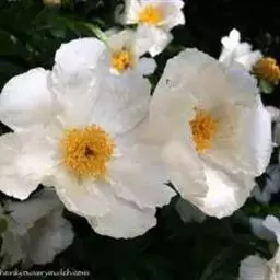 一般单独着生于茎的顶端或近顶端叶腋处,也有一些稀有品种,是2花或3花并出的。原种花白色,花径8~11厘米,花瓣5~13枚,倒卵形,雄蕊多数,花丝黄色,花盘浅杯状,包裹心皮基部,顶端钝圆,心皮3~5枚无毛或有毛,顶具喙;园艺品种花色丰富,有白、粉、红、紫、黄、绿、黑和复色等,花径10~30厘米,花瓣可达上百枚,有的品种甚至有880枚,花型多变。花期5~6月,果期8月。果实