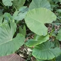 芋(学名:Colocasia esculenta (L) . Schott)是天南星科、芋属植物。湿生草本。块茎通常卵形,常生多数小球茎,均富含淀粉。叶2-3枚或更多。叶柄长于叶片,长20-90厘米,绿色,叶片卵状,长20-50厘米。佛焰苞长短不一,一般为20厘米左右:管部绿色,长约4厘米,粗2.2厘米,长卵形;檐部披针形或椭圆形,长约17厘米,展开成舟状,边缘内卷,淡黄色至绿白色。肉穗花序长约10厘米,短于佛焰苞。花期2-4月(云南)至8-9月(秦岭)。