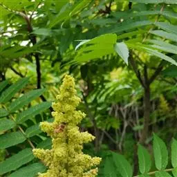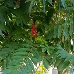 火炬树是漆树科盐麸木属落叶灌木或小乔木;株高,树形不整齐;小枝粗壮,红褐色,密生绒毛;叶轴无翅,…