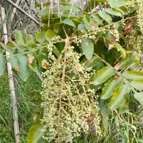 落叶灌木或小乔木,高可达10米。树皮灰褐色,初平滑后呈纵裂。单数羽状复叶,多聚生于枝顶;小叶9~1…