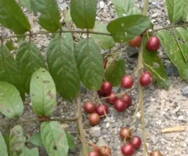 攀援状木质藤本,小枝紫褐色,具条纹,密被黄色绒毛。奇数羽状复叶互生,长20—40厘米,叶轴和叶柄圆柱形,密被黄色绒毛,有小叶4—7对;小叶对生,膜质至薄纸质,卵形或卵状椭圆形,长4—11厘米,宽2—4.5厘米,先端短渐尖或急尖,基部略偏斜,心形或近心形,上半部常具钝齿,稀全缘或全部具齿,叶面干后常带褐色,除中脉上密被黄色微柔毛外,其余疏被毛或近无毛,具白色细小乳突体,叶背通常沿中脉、侧脉和细脉上疏被黄色平伏柔毛,脉腋被黄色簇毛,侧脉6—8对,两面突起,网脉在叶背明显突起;小叶柄短,长2—3毫米,密被黄色绒毛。圆锥花序顶生或腋生,比叶长,长20—35厘米,稀达45厘米,密被黄色绒毛,分枝疏散,最下部分枝长10-15厘米;花小,白色;小苞片钻形,长约1毫米,被柔毛;花柄纤细,长约1.5毫米,无毛;花萼5裂,裂片狭三角形,长约0.8毫米,无毛;花瓣5,长卵形,长约1.5毫米,宽约0.7毫米,先端急尖,无毛;雄蕊10,花丝钻形,无毛,花药小,卵圆形,比花丝短;花盘10裂,无毛;子房卵圆形,径约1毫米,无毛,花柱5,分离,侧生,近圆锥形,长约0.5毫米,无毛。核果椭圆形,偏斜,略压扁,长约10毫米,宽约8毫米,成熟时黑色,中果皮肉质,为红色胶状粘液所充满,内果皮壳质,薄;种子1,长圆形,压扁,长约8毫米,宽约4毫米。
