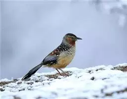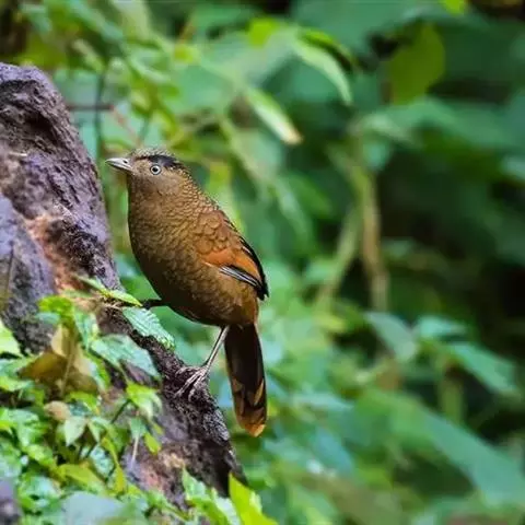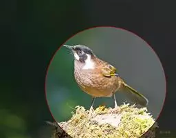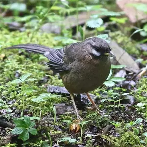玉山噪鹛中等体型的褐色鸟类。白色长眉纹及髭纹显著;顶冠灰而具白色的鳞状斑纹;脸侧及颏褐色,…