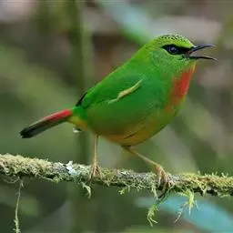 火尾绿鹛是莺科、绿鹛属小型鸟类,体长11-14厘米。上体绿色,头顶至枕具黑色鳞状斑,眼先和眼后黑色,…
