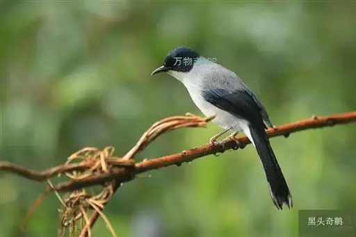 黑头奇鹛(Heterophasia melanoleuca):小型鸟类,体长20-24cm。前额、头顶一直到后颈黑色具有金属光泽,头侧和耳羽暗褐色。上体褐灰色,尾羽暗褐色具灰白色端斑。飞羽褐色,外翈黑色。下体几纯白色,仅胸和体侧沾灰。多分布于缅甸、中国西部及中部、泰国北部和印度支那。