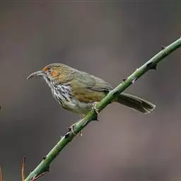 褐脸雀鹛是雀眉科、雀鹛属型鸟类,体长15-17厘米。头顶褐灰色具黑色侧冠纹,头侧皮黄褐色。…