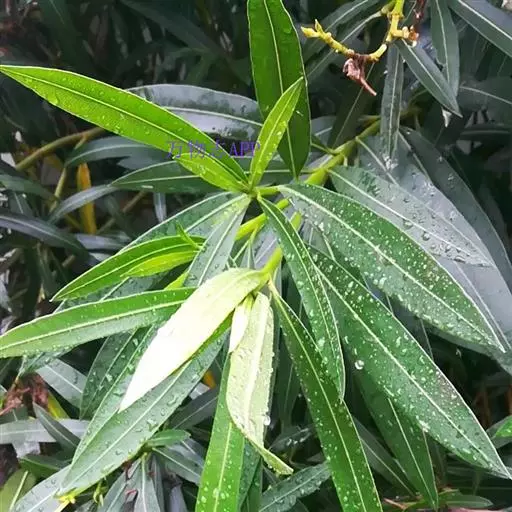 欧洲夹竹桃(Nerium oleander L.)直立常绿灌木,枝条灰绿色,含水液。叶轮生,稀对生,具柄,革质,羽状脉,侧脉密生而平行。伞房状聚伞花序顶生,具总花梗;花萼5裂,裂片披针形,双覆盖瓦状排列,内面基部具腺体;花冠漏斗状,红色、栽培有演变为白色或黄色,花冠筒圆筒形,上部扩大呈钟状,喉部具5枚阔鳞片状副花冠,每片顶端撕裂;花冠裂片5,或更多而呈重瓣,斜倒卵形,花蕾时向右覆盖;雄蕊5,着生在花冠筒中部以上,花丝短,花药箭头状,附着在柱头周围,基部具耳,顶端渐尖,药隔延长成丝状,被长柔毛;无花盘;子房由2枚离生心皮组成,花柱丝状或中部以上加厚,柱头近球状,基部膜质环状,顶端具尖头;每心皮有胚珠多颗。蓇葖2,离生,长圆形;种子长圆形,种皮被短柔毛,顶端具种毛。