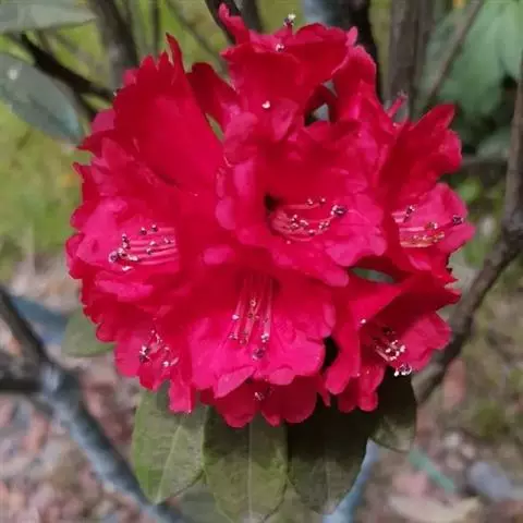 团叶杜鹃:常绿灌木,稀小乔木,高1-4.5米,稀达15米;树皮褐色;幼枝绿色,无毛,老枝黄褐色。顶…