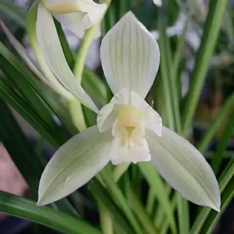 寒兰是兰科兰属的地生草本植物。茎为椭圆形;叶呈带状,尾部修长渐尖,叶脉较明显;每秆花枝开5-12朵,…