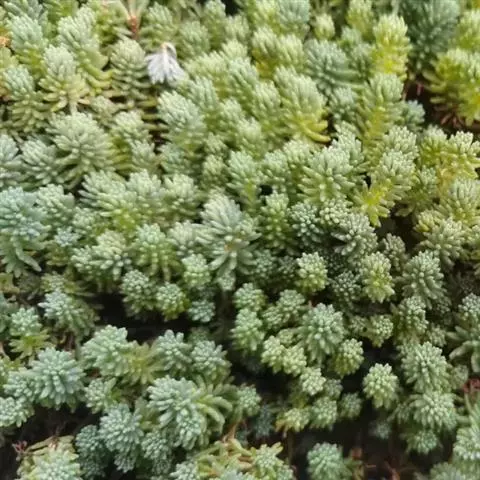 薄雪万年草别名矶小松,景天科景天属多年生草本植物,其细小的蓝绿色棒状叶片环绕生长于茎端,…