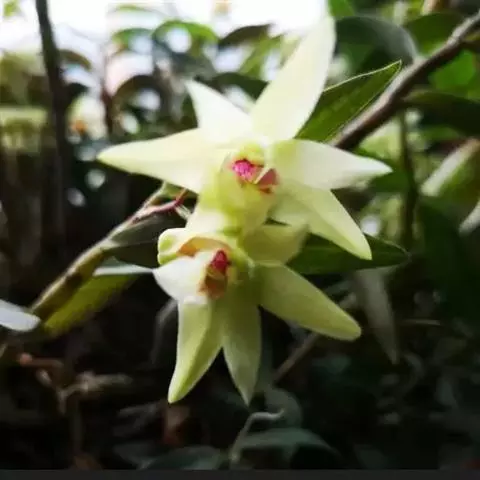 美花石斛是兰科石斛属多年生草本。茎柔弱,斜立或下垂,呈细圆柱形,有时分枝;叶互生于茎上,…