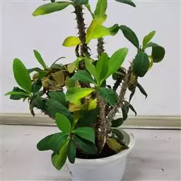 铁海棠为大戟科大戟属蔓生灌木植物;茎多分枝,具纵棱,呈旋转状;叶互生,…