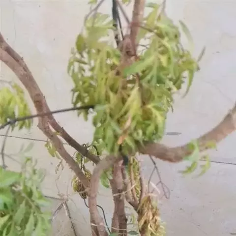 撒金碧桃 Voss)是李亚科,桃属植物桃的变种,叶为窄椭圆形至披针形,长15厘米,宽4厘米,先端成…