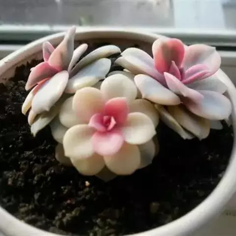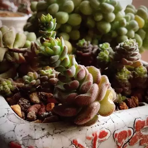女雏是景天科石莲花属的多肉植物。特征是小巧的株形和橙粉色叶缘。极易生侧芽,…