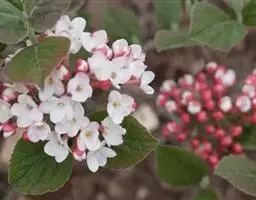 红蕾荚蒾,落叶灌木植物。单叶,对生,为椭圆形或近圆形,具三角状锯齿,聚伞花序。…