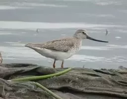 阔嘴鹬是涉禽,体长17厘米。特征为翼角常具明显的黑色块斑并具双眉纹。与黑腹滨鹬平滑下弯的嘴相比,…