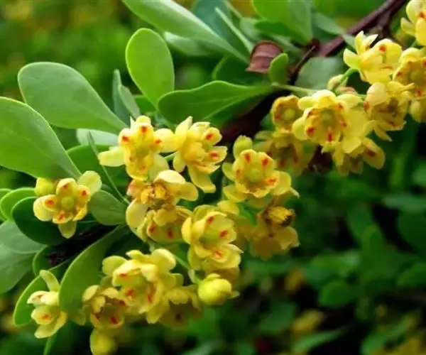 日本小檗(学名:Berberis thunbergii DC.)是小檗科小檗属植物,落叶灌木,一般高约1米,枝条开展,幼枝淡红带绿色,老枝暗红色;茎刺单一,叶薄纸质,倒卵形、匙形或菱状卵形,花朵组成具总梗的伞形花序,或近簇生的伞形花序或无总梗而呈簇生状;花梗无毛;小苞片卵状披针形,带红色;花黄色;外萼片卵状椭圆形,内萼片阔椭圆形,花瓣长圆状倒卵形,浆果椭圆形,亮鲜红色,花期4-6月,果期7-10月。