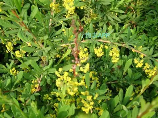 日本小檗是小檗科小檗属的落叶灌木植物,株高可达1.5-2.0米。枝暗紫色,有条棱,小枝淡红褐色,…