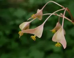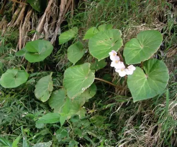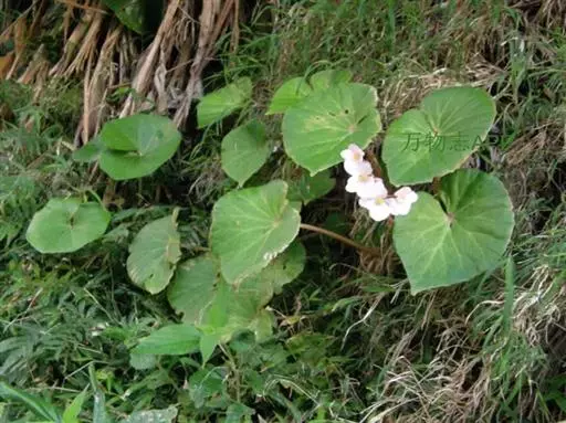 兰屿秋海棠(学名:Begonia fenicis Merr.):秋海棠科,秋海棠属的多年生无茎草本植物,根状茎长圆柱状,叶均基生,叶片两侧极不相等,轮廓卵状圆形或近圆形,上面深绿色,下面色淡,掌状脉,下面明显呈深紫色,花葶细弱,有纵棱,花聚伞花序,白色至粉红色,花被片扁圆形,花药长圆形,子房卵状长圆形,蒴果下垂,种子小极多数,5月至8月开花。