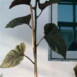 由漆斑菌引起的秋海棠叶斑病症状:病症一般出现在秋海棠叶片边缘、叶尖和破损叶片的叶脉上。坏死区域呈现黑褐色,然后是水渍状。诊断方法是下部的叶片经常会不规则形状的孢子群,中央呈黑色,但边缘为白色。