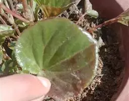 真菌病害,由葡萄孢菌引起的灰霉病症状:秋海棠叶片灰霉病经常发植株的下部,尤其是根茎处与基质接触的地方更容易感染病菌,被水浸润的病斑很快会扩散到整个叶整个植株,受害区域呈现坏死斑点,逐渐由褐色转变为黑色。当夜间温度较低、白天温度较高而且湿高时,病原孢子生长加快,受害的叶片上会长出灰绿色的霉状物。