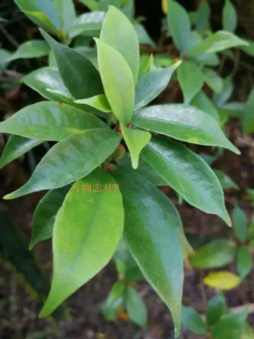灌木,高1.5-3米;小枝,叶柄,叶脉幼时疏被短柔毛;枝纤细,节短。叶膜质,倒披针形,长4-11厘米,宽1.5-3.5厘米,全缘或在中部以上有疏钝齿裂,顶部渐尖,中部以下渐窄,至基部成狭楔形,干后表面墨绿色,背面淡绿色,中脉不明显。榕果单生叶腋,卵状球形,直径6-9毫米,成熟时绿带红色,顶部脐状突起,基部收缩为纤细短柄,基生苞片3,边缘齿状,总梗长2-3毫米,纤细;雄花散生榕果内壁,有或无柄,花被片3-4,卵形,雄蕊2,稀为3,花药长过花丝;瘿花,花被片4-5,舟状,子房球形,有柄,花柱短,侧生;雌花,有柄或无柄,花被片4,花柱长,柱头漏斗形。瘦果球形,光滑。花期4-7月。