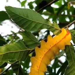 柞蚕,是鳞翅目大蚕蛾科柞蚕属一种吐丝昆虫。其身体及翅黄褐色,头棕褐,…