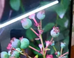蓝莓是杜鹃花科、越橘属的落叶灌木,小枝绿色,具棱或圆柱形,通常具成行的柔毛;叶片近革质,卵形至椭圆形,…