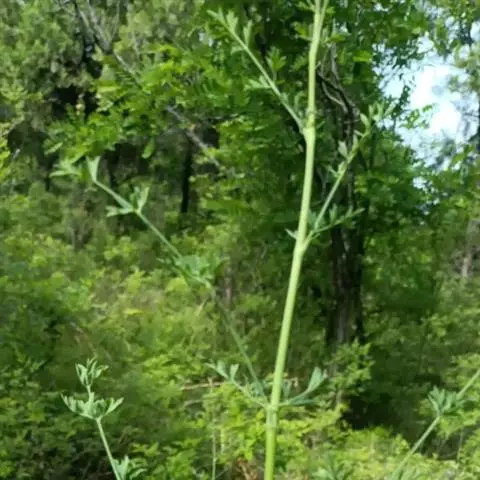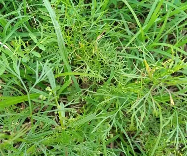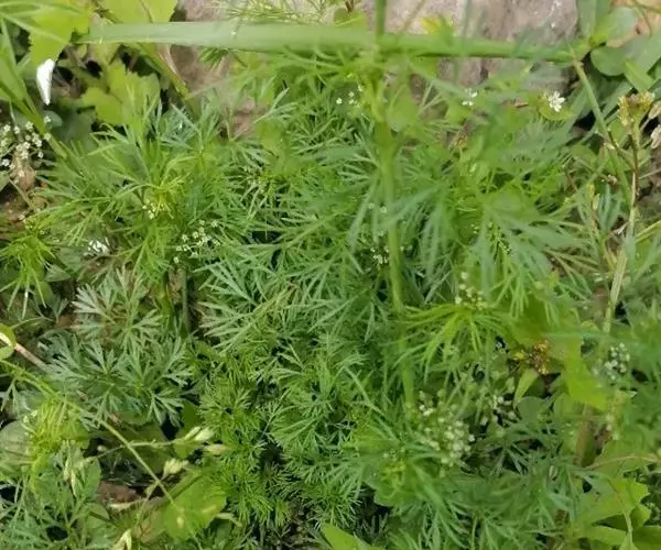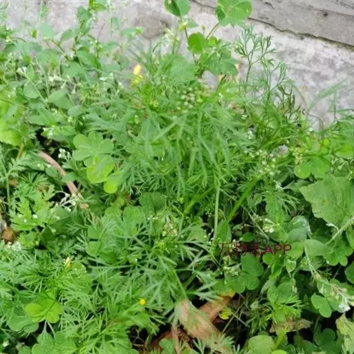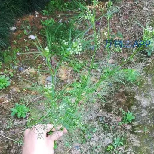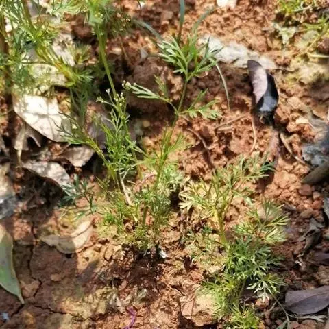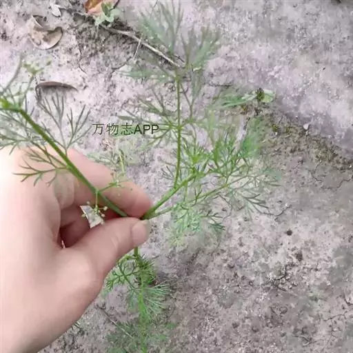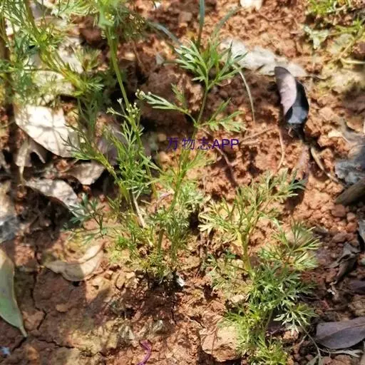 一年生草本,高25-45厘米。茎多分枝,光滑。根生叶有柄,柄长2-5 (11) 厘米,基部边缘略扩大成膜质叶鞘;叶片轮廓呈长圆形至长圆状卵形,长2-10厘米,宽2-8厘米,3至4回羽状多裂,裂片线形至丝状;茎生叶通常三出式羽状多裂,裂片线形,长10-15毫米。