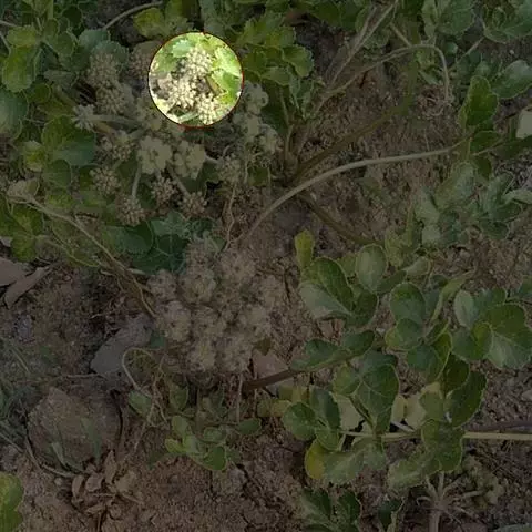细叶旱芹(学名:Apium leptophyllum (Pers.) F. Muell. ),一年生草本,高25-45厘米。茎多分枝,光滑。根生叶有柄,基部边缘略扩大成膜质叶鞘;叶片轮廓呈长圆形至长圆状卵形,裂片线形至丝状;茎生叶通常三出式羽状多裂,裂片线形,长10-15毫米。复伞形花序顶生或腋生,通常无梗或少有短梗,无总苞片和小总苞片;花柄不等长;无萼齿;花瓣白色、绿白色或略带粉红色,卵圆形;花丝短于花瓣,很少与花瓣同长,花药近圆形,长约0.1毫米;花柱基扁压,花柱极短。果实圆心脏形或圆卵形;胚乳腹面平直,每棱槽内有油管1,合生面油管2。心皮柄顶端2浅裂。花期5月,果期6-7月。
