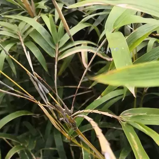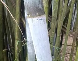 竿高4-7米,直径1.5-2.5厘米,尾梢近直或略弯,下部挺直,绿色;节间长30-50厘米,幼时薄被白蜡粉,并于上半部被棕色至暗棕色小刺毛,后者在近节以下部分尤其较为密集,老时则光滑无毛,竿壁稍薄;节处稍隆起,无毛;分枝自竿基部第二或第三节即开始,数枝乃至多枝簇生,主枝稍较粗长。
