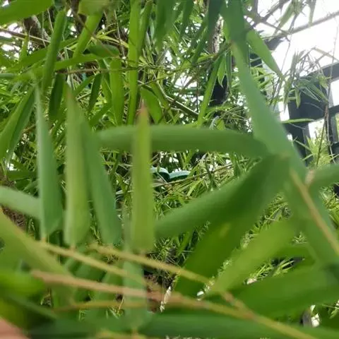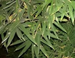 凤尾竹(Bambusa multiplex (Lour.) Raeusch. cv. Fernleaf R. A. Young):该栽培品种与观音竹(Bambusamultiplex(Lour.) Raeusch. ex Schult.var.riviereorumR. Maire)相似,但植株较高大,高3-6米,竿中空,小枝稍下弯,具9-13叶,叶片长3.3-6.5厘米,宽4-7毫米等特征与之有别。原产于中国,华东、华南、西南以至台湾、香港均有栽培。多种植以作绿篱或供观赏。