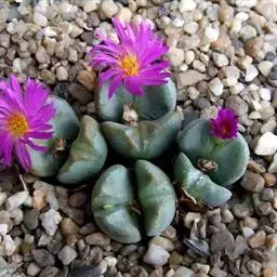生石花,番杏科生石花属多年生肉质草本植物。植株几乎无茎;花朵较大,颜色艳丽,呈多边形,…