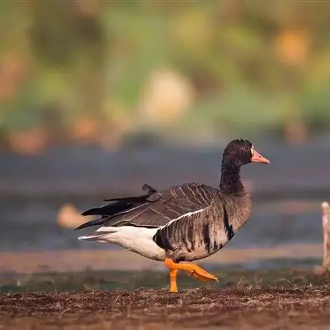 豆雁,雁形目鸭科。成鸟头、颈、背灰褐色,带淡黄色羽缘;尾上覆羽白色,尾羽黑褐色带白端,…